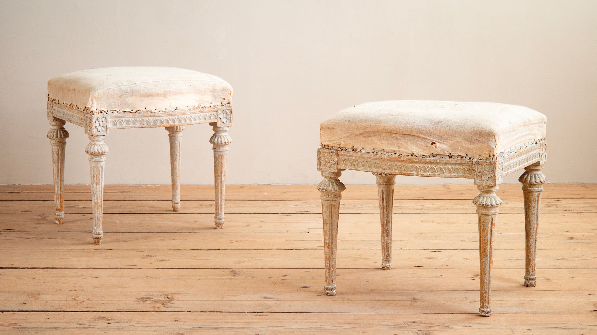 Fine pair of early 19th century Gustavian stools in their original condition. Ca 1800 Sweden.