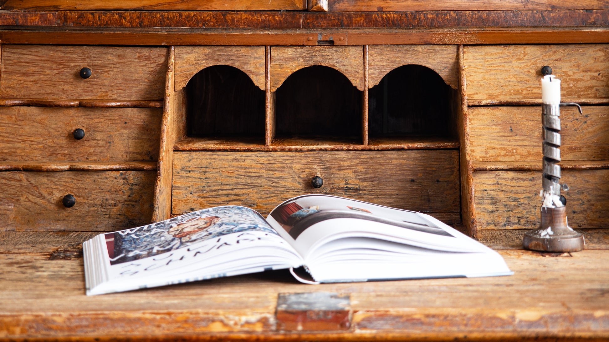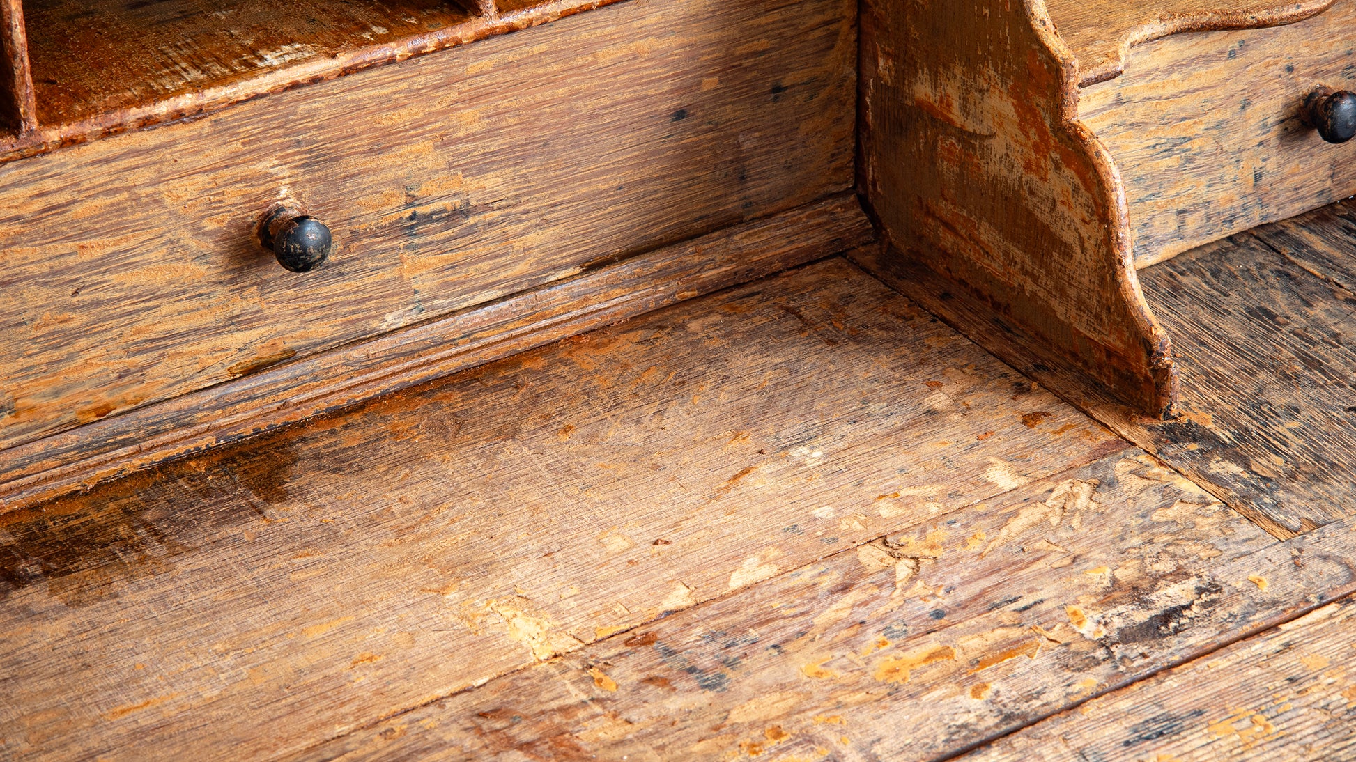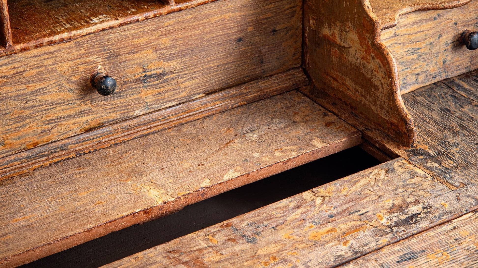Good original condition with smaller veneer repairs. Dry scraped interior. Wear due to age and use.