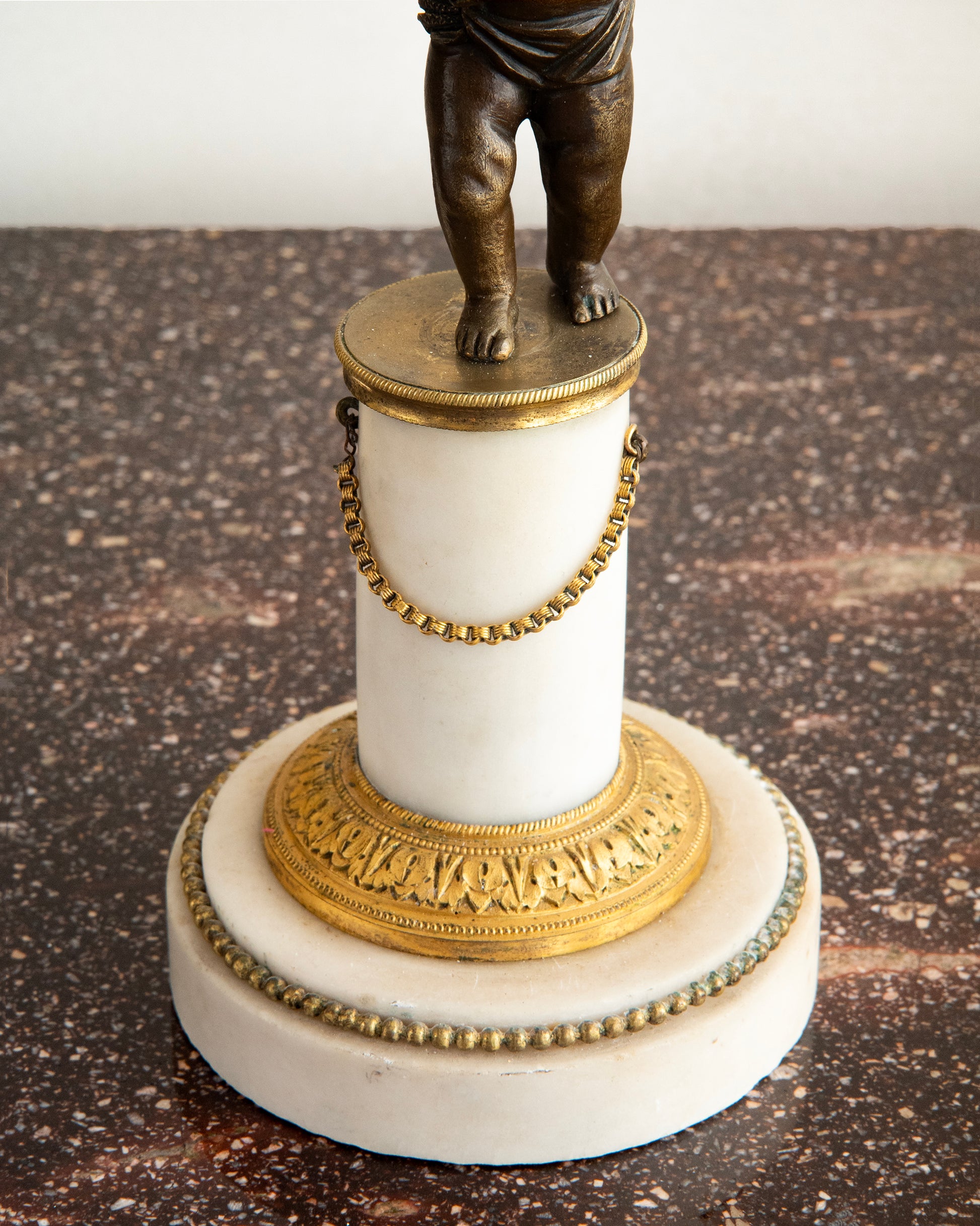 Pair of early 19th century Swedish Late Gustavian gilt and dark patinated bronze candlesticks. Sweden ca 1810.