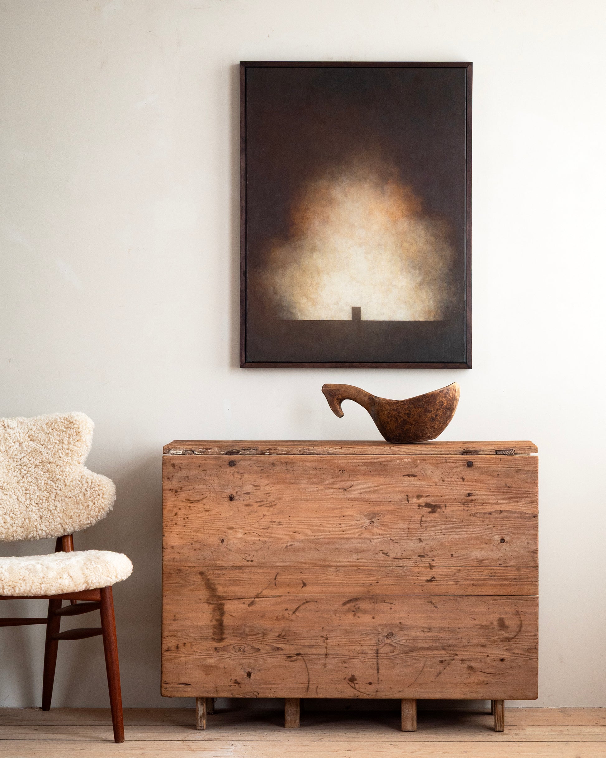 Good condition, One pull out leg restored. Wear consistent with age and use.