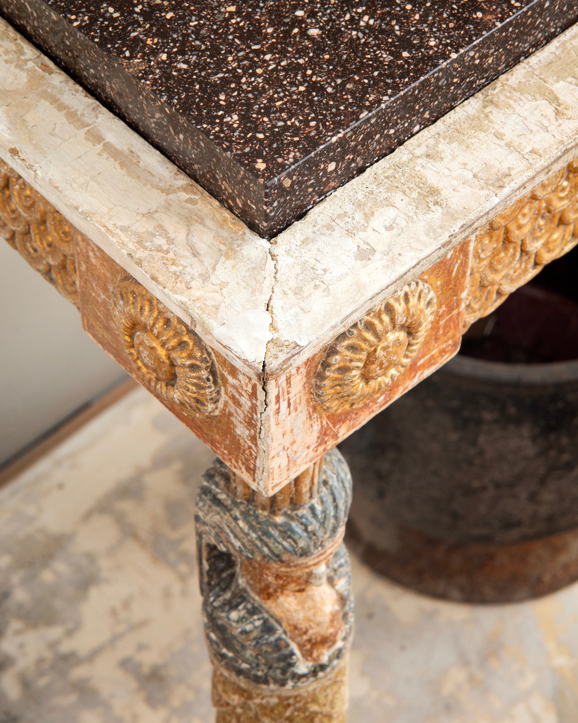 19th century Swedish Gustavian console table in Egyptian taste with Porphyry marble top. ca 1810 Sweden.